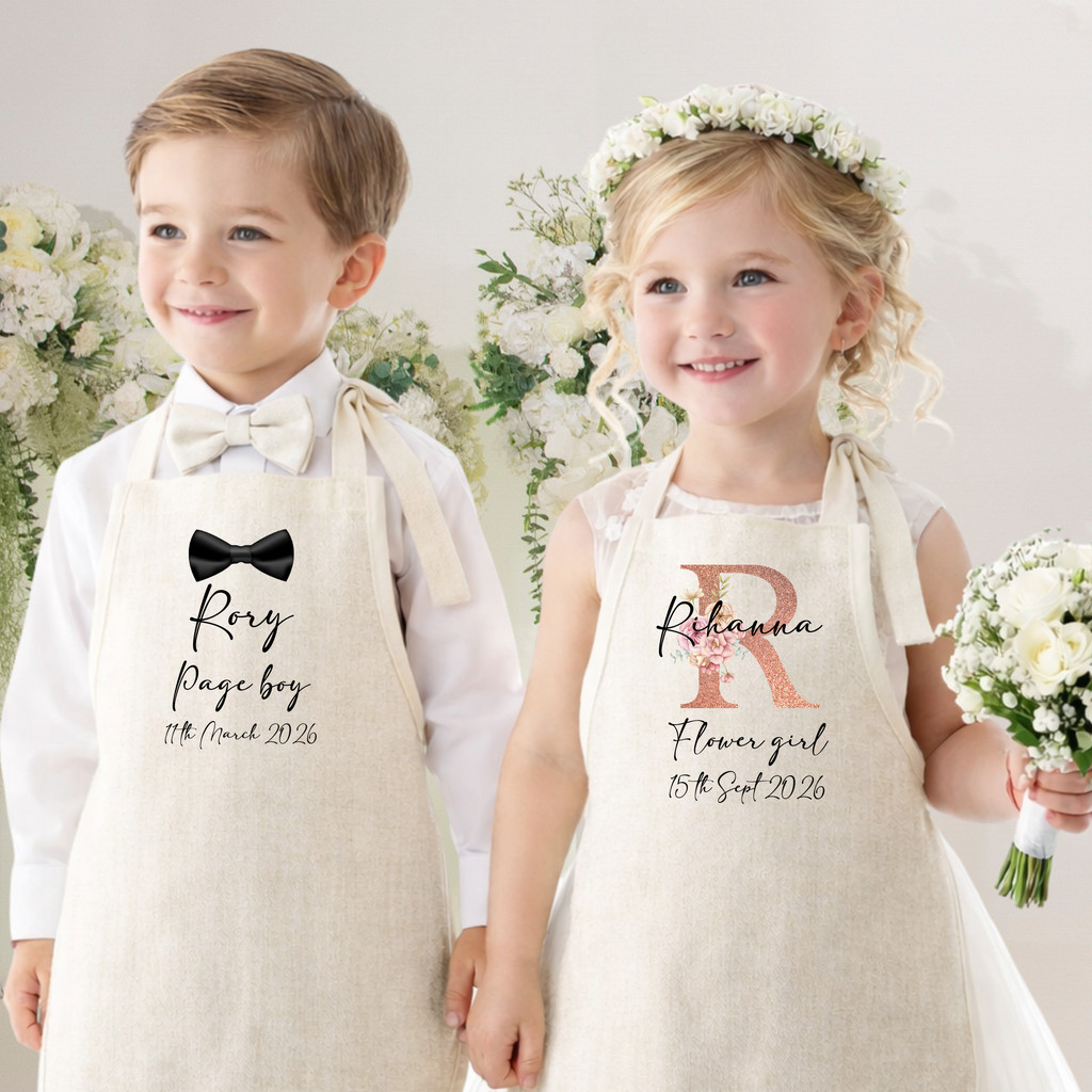 Looking for the perfect way to save the little ones outfits on your special day? Our personalised aprons are the cutest way to make sure their outfits stay wedding approved throughout your big day, they also make a perfect keepsake gift for them to treasure forever.