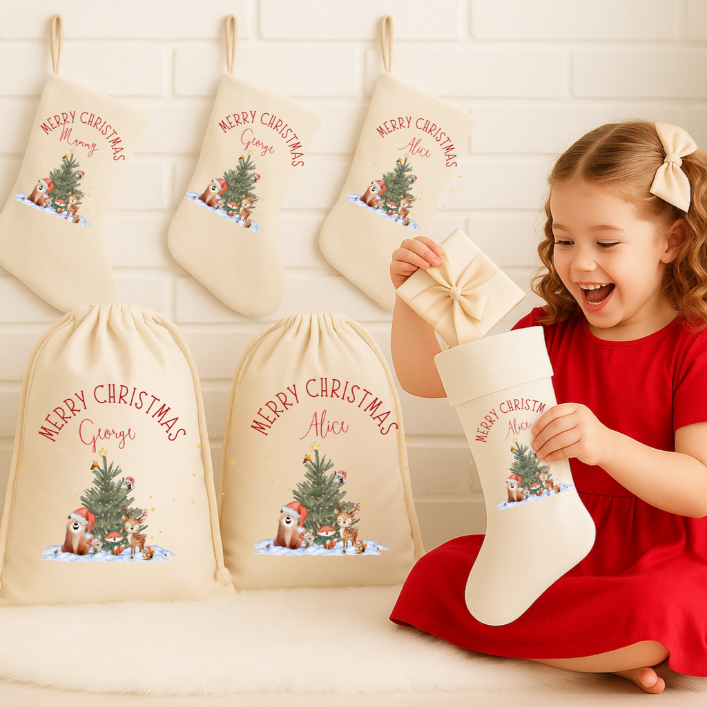 Each sack can be customised with a name, initials, or festive message, making it a unique keepsake she or he will treasure year after year. Ideal for Santa gifts, Christmas stockings, or family presents.