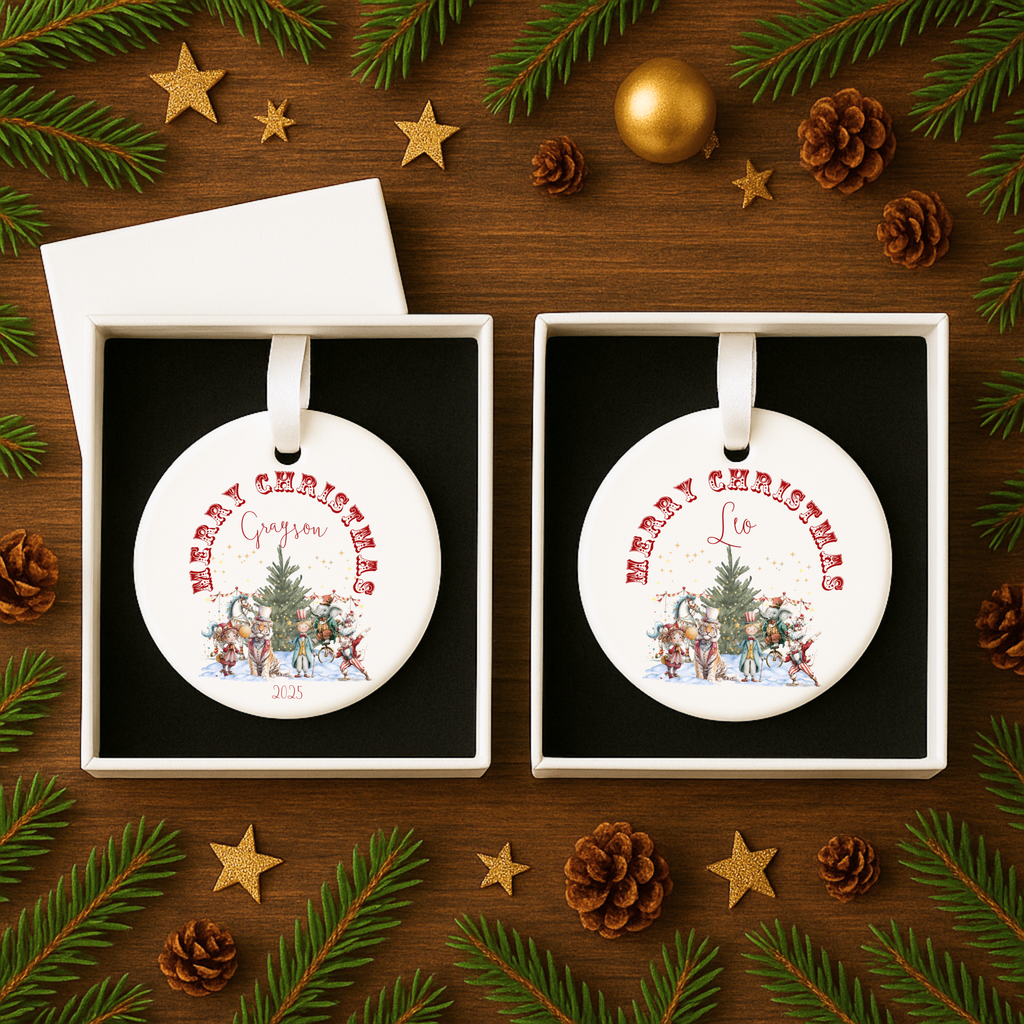 Personalised Circus Christmas Ornament – Custom Ceramic Hanging Decoration | Family Keepsake, Baby’s First Xmas, Festive Holiday Gift