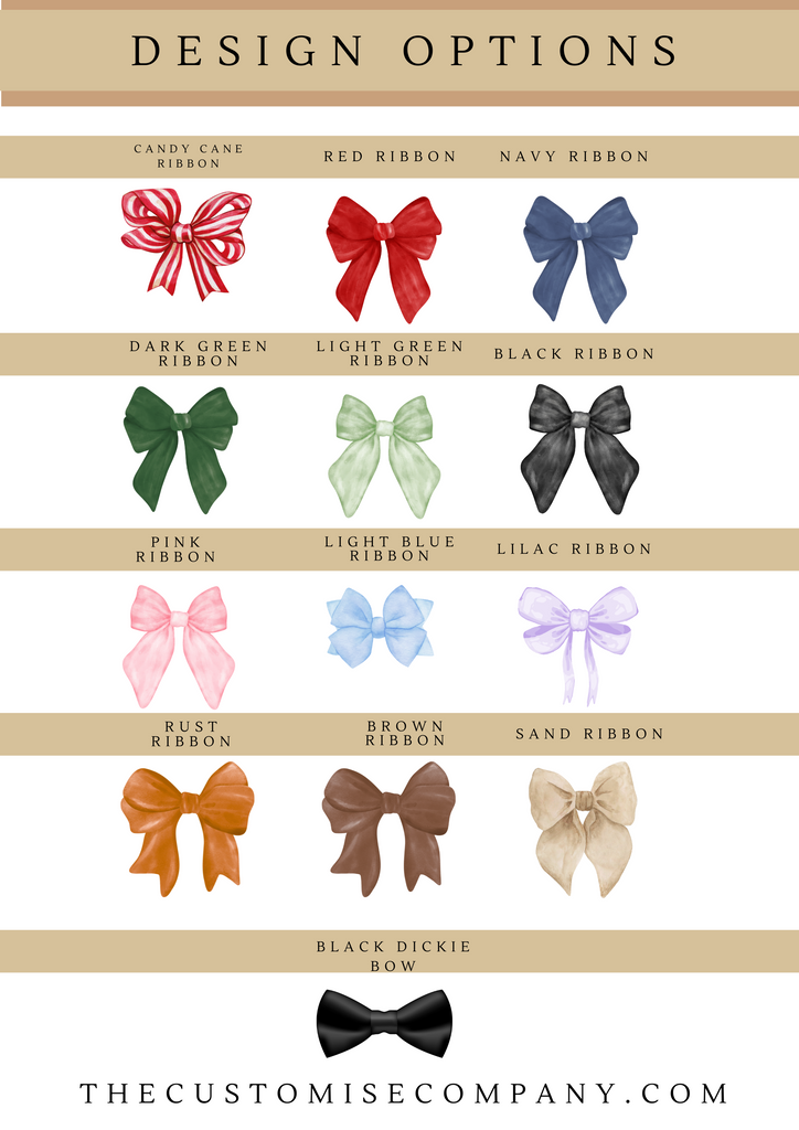 • Bow: Hand-tied satin ribbon (red, gold, silver, white & more)