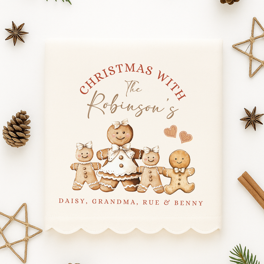 Celebrate the season with our Personalised Gingerbread Family Christmas Cushion, a festive keepsake designed to bring warmth and joy into your home.