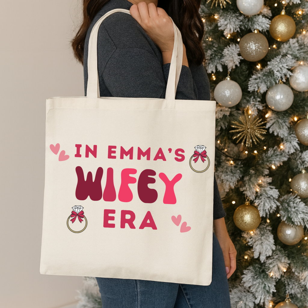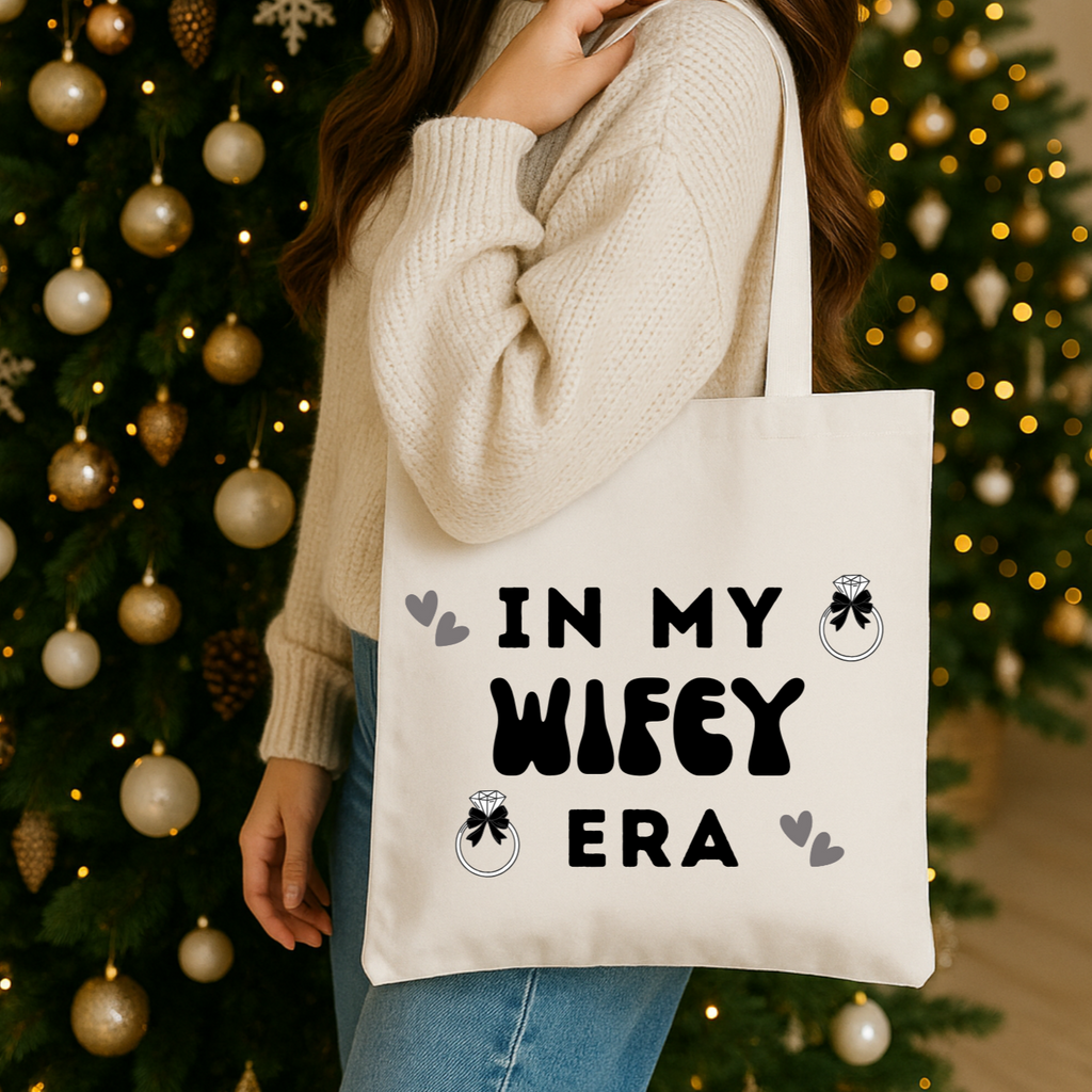 Give her a thoughtful, practical, and stylish gift this Christmas with our "In My Wedding Era" Tote Bag — perfect for the bride who’s living her best life as she plans her dream day.
