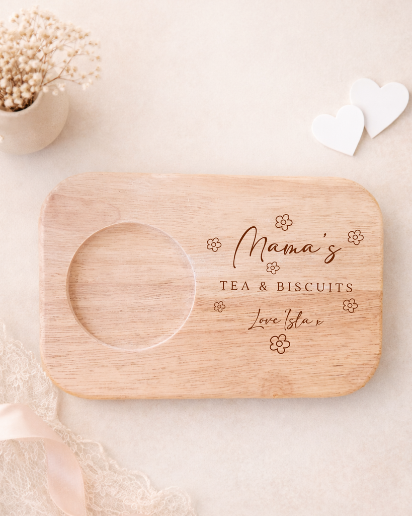 Looking for a thoughtful Mothers Day Gift that Mum will actually use and treasure? Our beautiful Personalised Tea Biscuit Board is a unique keepsake designed especially for those cosy tea moments. Whether you’re searching for meaningful Mum Gifts, a First Mothers Day surprise, or a heartfelt New Mum Gift, this custom Wooden Board is guaranteed to make her smile.